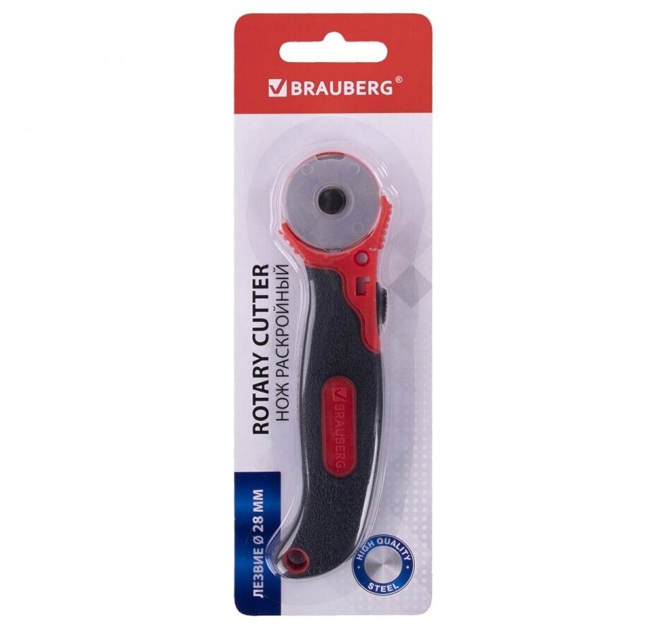 Нож раскройный роликовый 28мм Brauberg, круглое лезвие, резиновые вставки (238089) информация: