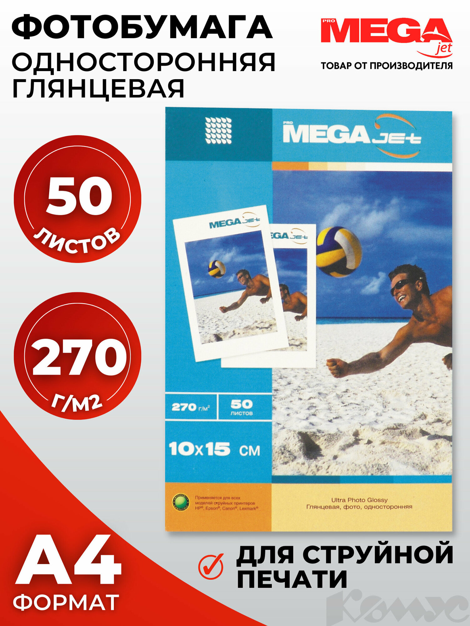 Бумага для цв.струй.печ. MEGAJET (10х15,270г,ULTRA PHOTO,глянц,пачка 50л)