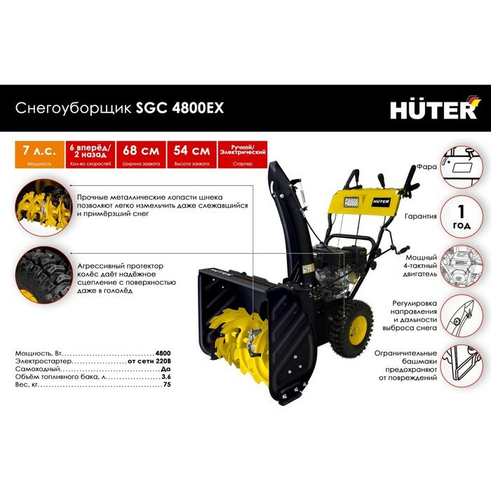 Снегоуборщик бензин. Huter SGC 4800EX 7л.с. информация: