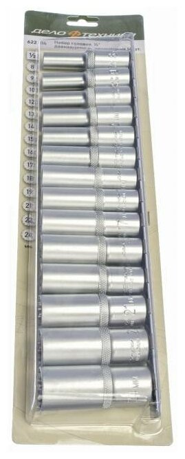 Набор головок двенадцатигранных удлиннных 12 (8,9,10,12,13,14,15,16,17,18,19,21,22,24 мм) 14 Дело Техники 622314
