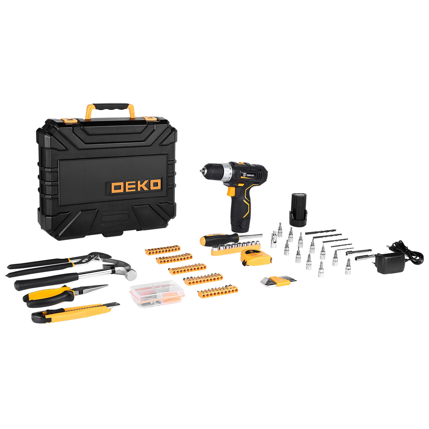 Аккумуляторная дрель-шуруповерт DEKO GCD12DU3 в кейсе + набор 195 инструментов для дома, 12В, 2х1.5Ач