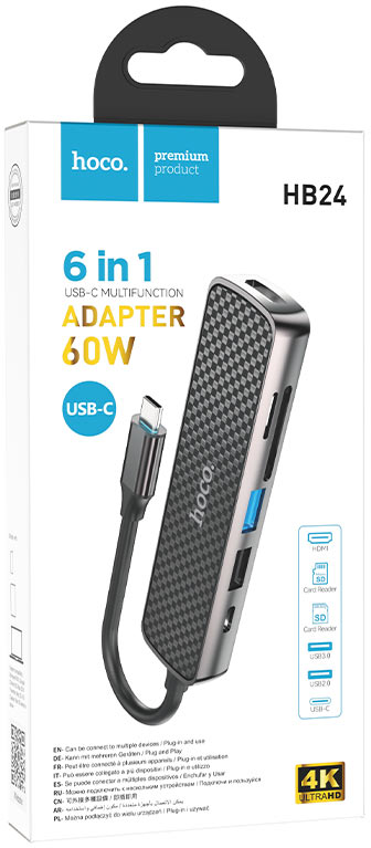 Hoco / HB24 Концентратор USB разветвитель TYPE-C картридер (6 в 1) Гнёзда HDMI USB3.0 USB 2.0 SD TF PD