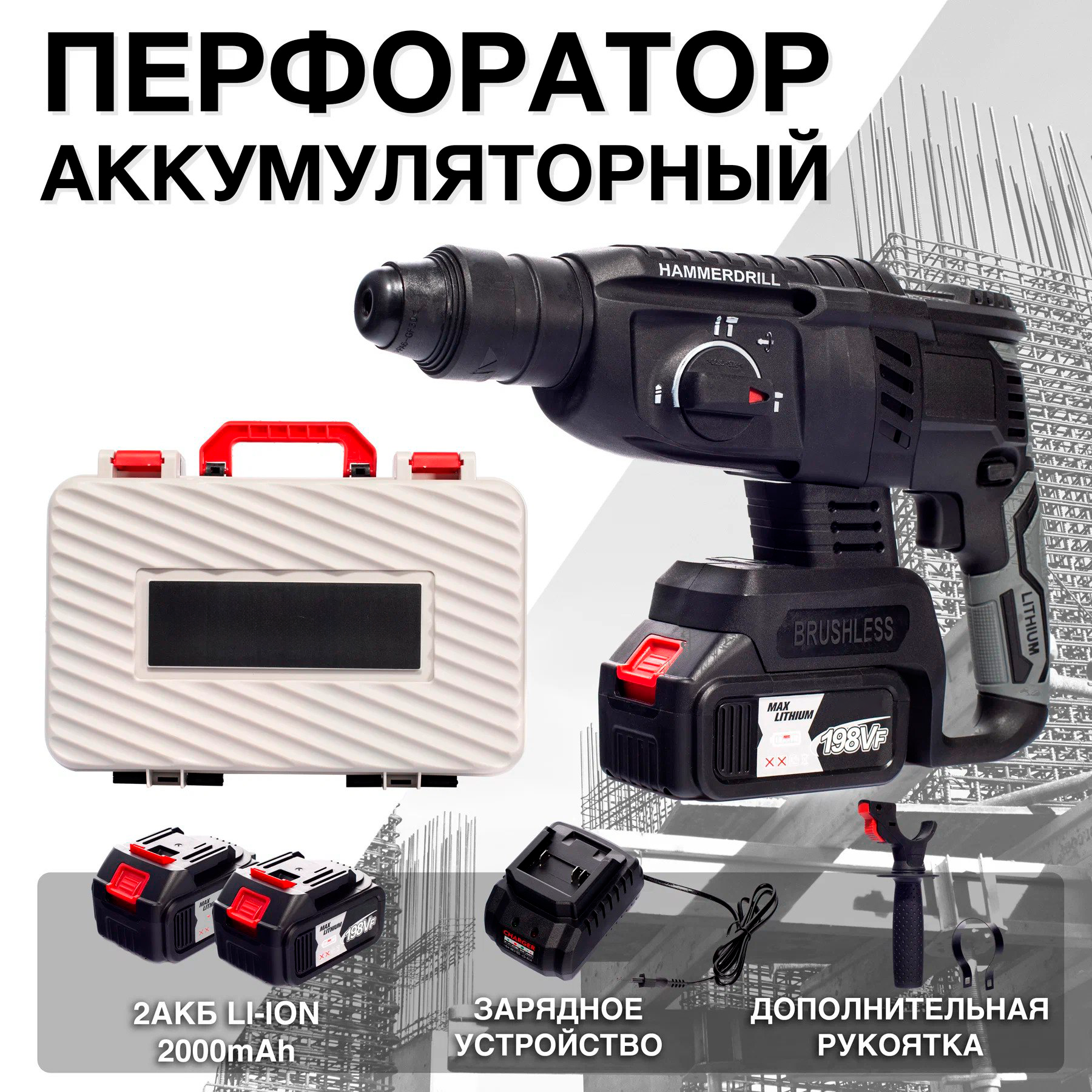 Перфоратор аккумуляторный в кейсе , Дрель , Перфоратор для бетона информация:
