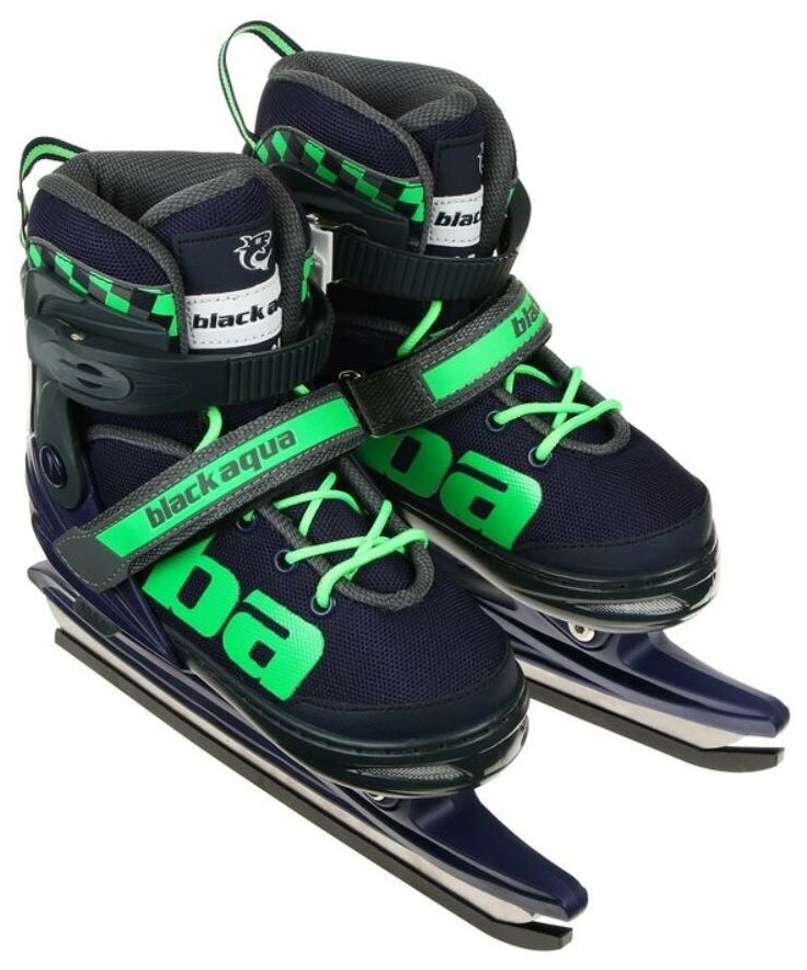Коньки ледовые BlackAqua раздвижные AS-408 р.31-34, темно-синий-зеленый 4 730 ₽