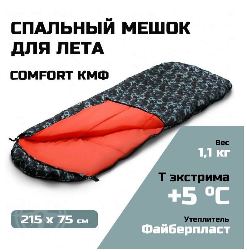 Спальный мешок одеяло Prival Camp Comfort КМФ город, t extr 5 °С, 215х75 информация: