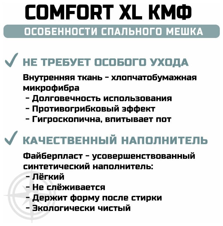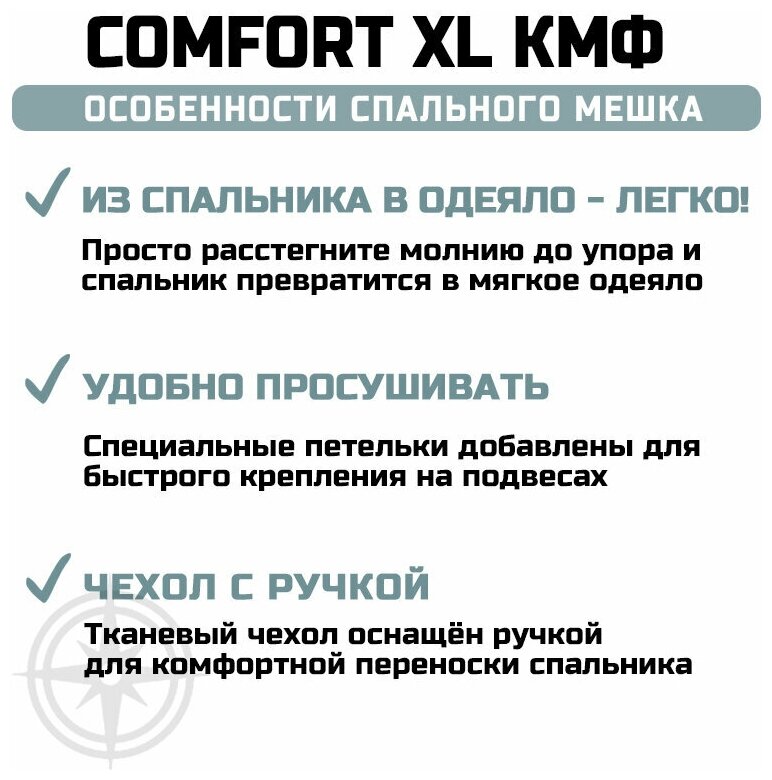 Спальный мешок одеяло Prival Camp Comfort XL КМФ город, t extr -2 °С, 215х90 см информация: