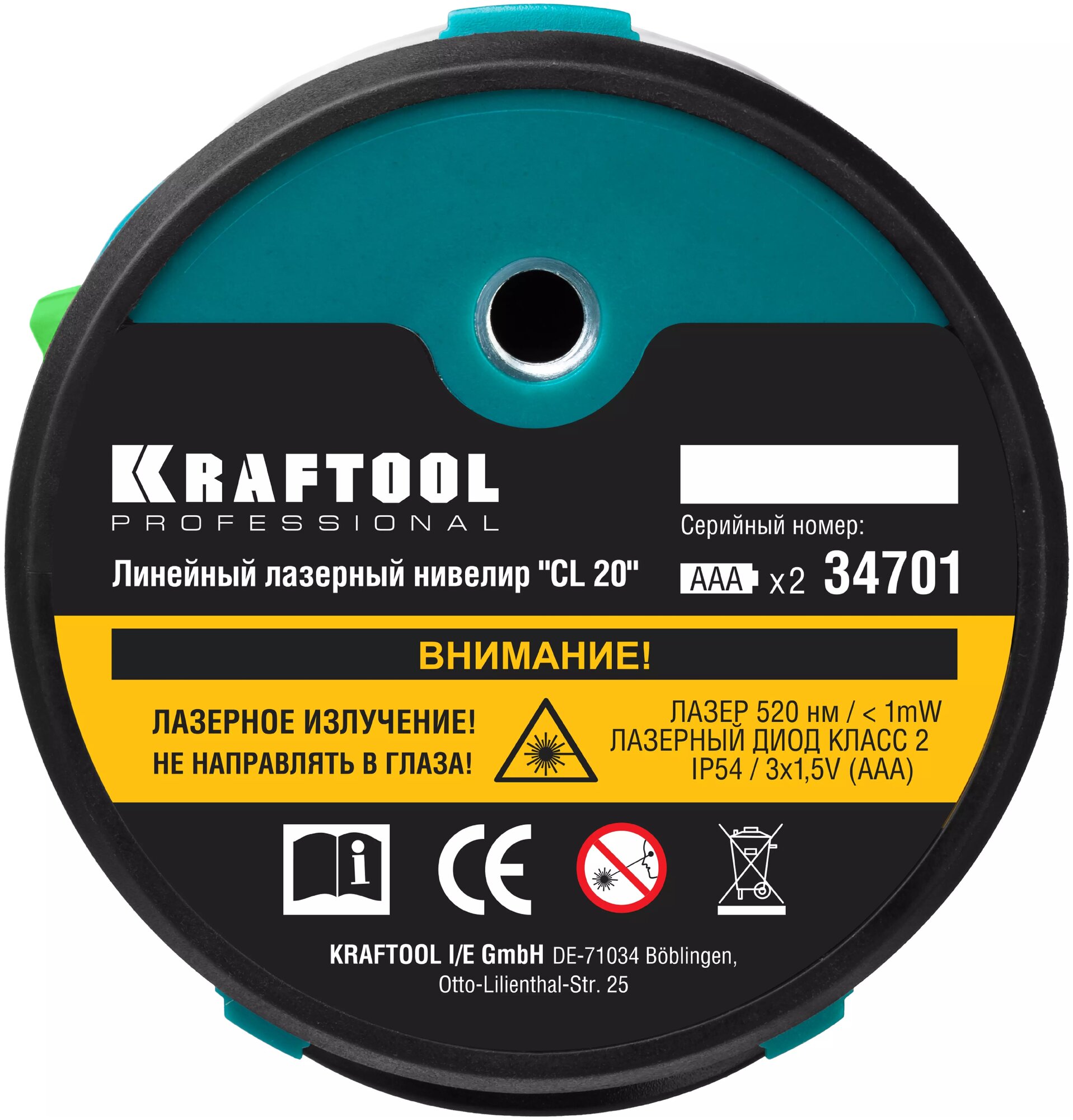 KRAFTOOL 20 м, 0.2 мм/м, зеленый лазерный нивелир CL 20 34701 информация: