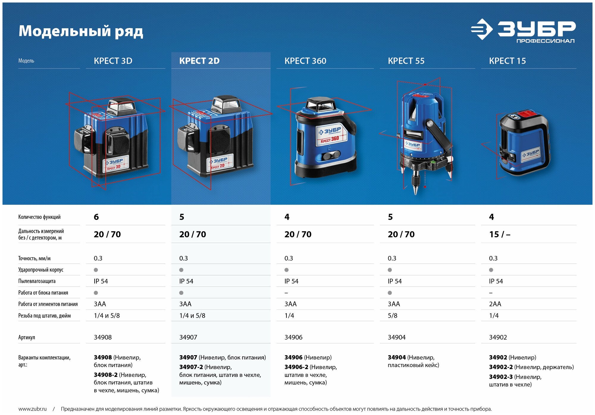 Нивелир лазерный линейный "Крест-2D" Зубр 34907 информация: