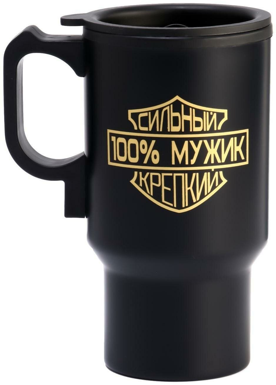 Термокружка, серия: Автомобильная, "100 % мужик", 450 мл, сохраняет тепло 4 ч, 12 х 17 см информация: