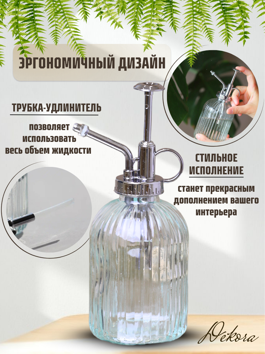 Отзывы на Пульверизатор для воды "Dekora" Стекло прозр. серебро 320 мл/ пульверизатор опрыскиватель ручной