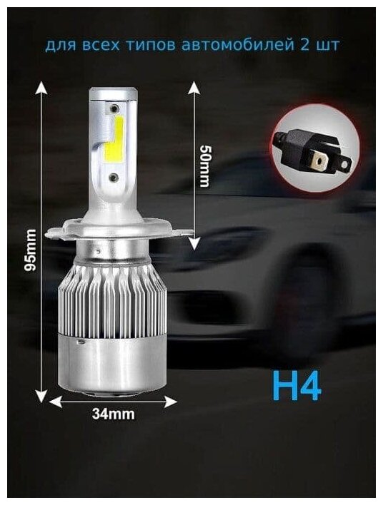 H4 лампа светодиодная для авто 2 шт. LED C6 (ярче ксенона) 12/24V 5000K 3800Lm / LED лампа для машины информация: