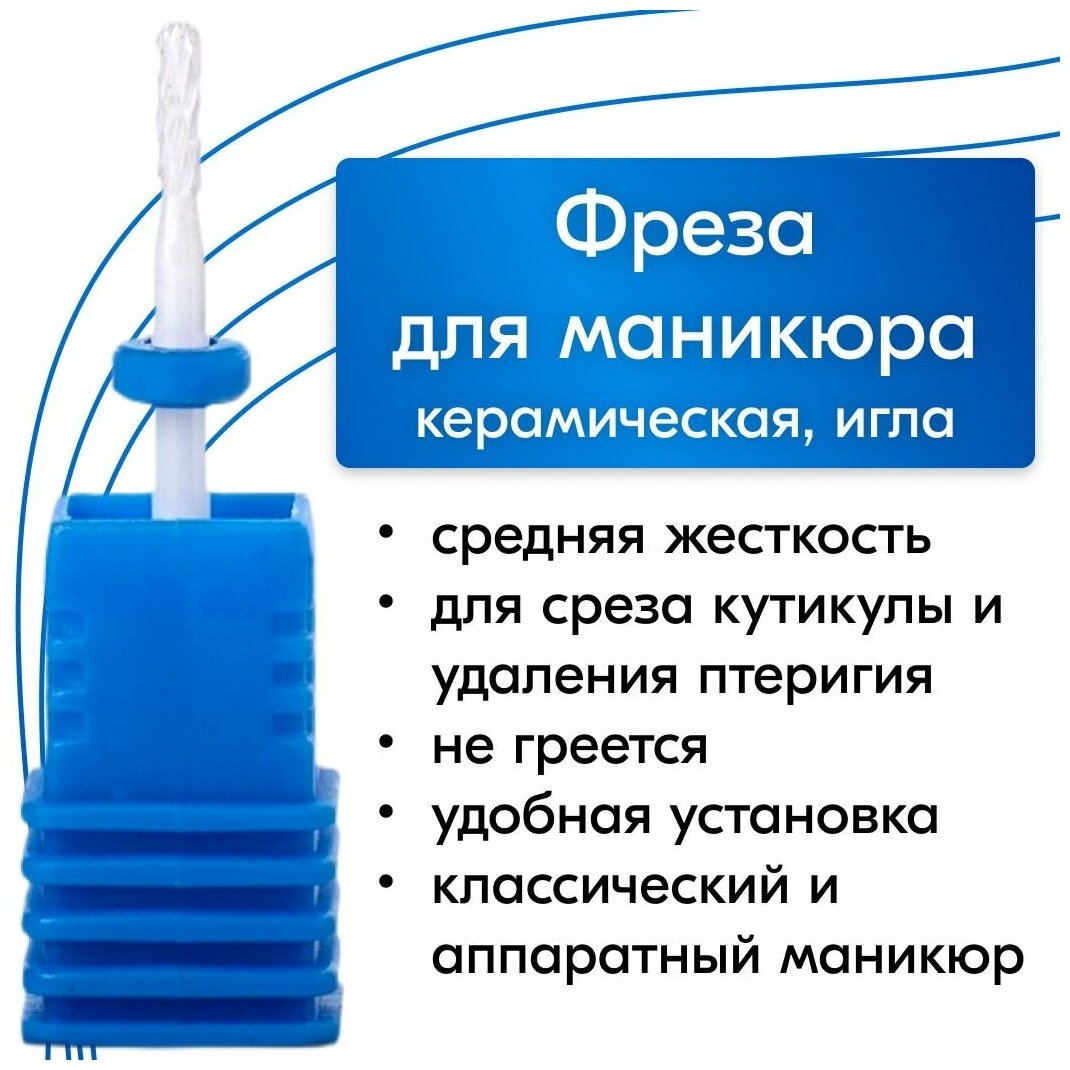 Фреза керамическая для аппаратного маникюра и педикюра, кутикул, насадка игла, синяя, фреза игла, керамика информация: