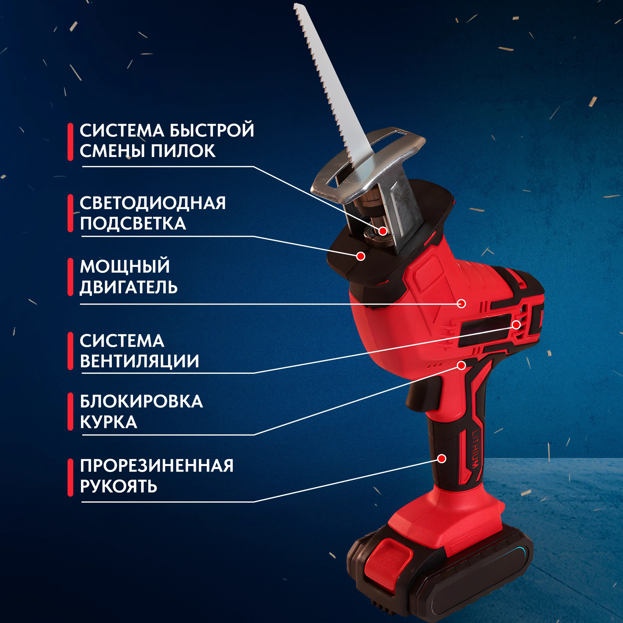 Сабельная электропила аккумуляторная LITHIUM 21B (тушка)