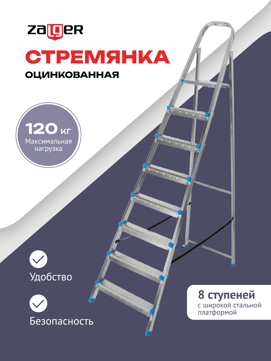 Стремянка стальная, 8 ступеней, Zalger, арт. 711-8 информация: