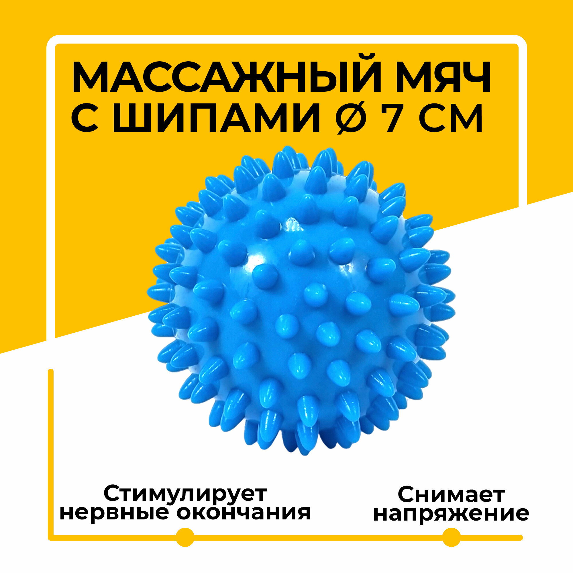 Мяч-шар массажный с шипами, ежик жесткий для фитнеса, йоги, пилатеса и МФР, Ø 7 см, синий информация: