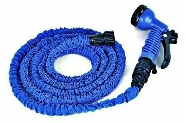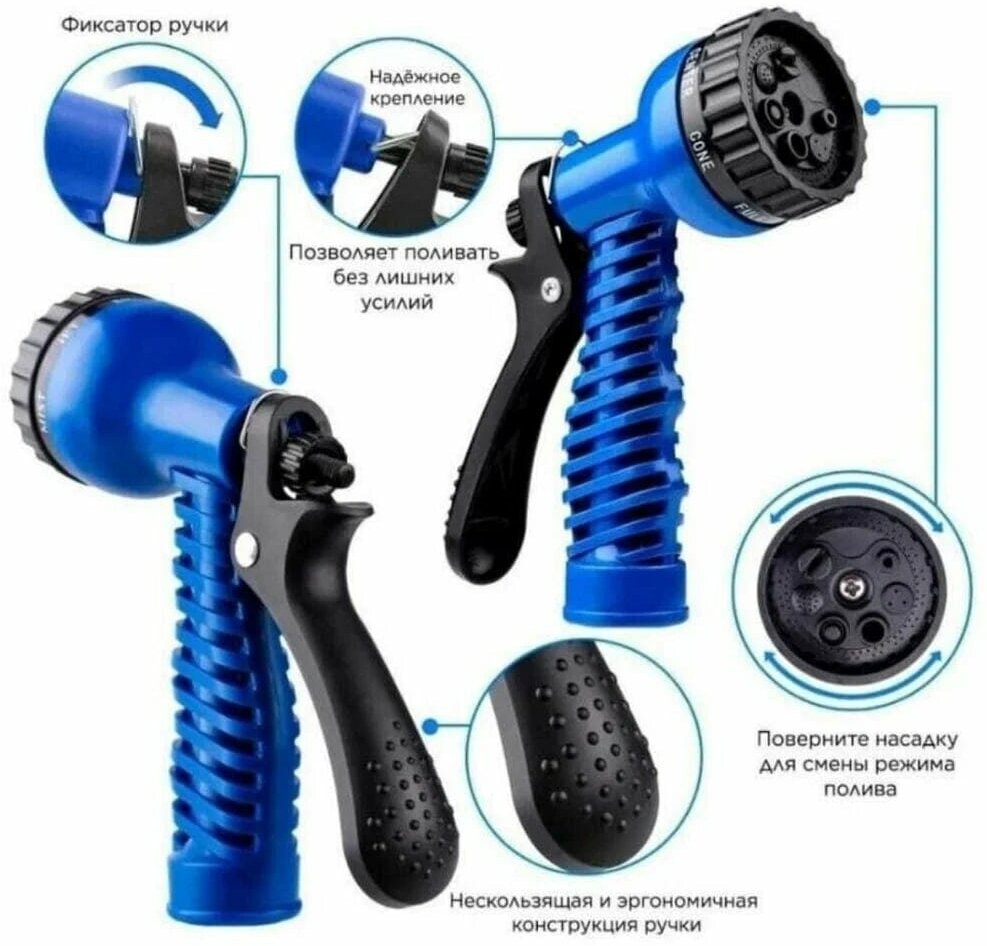 Чудо-шланг поливочный, садовый водяной, растягивающийся для полива 15 м с распылителем, синий. T4590