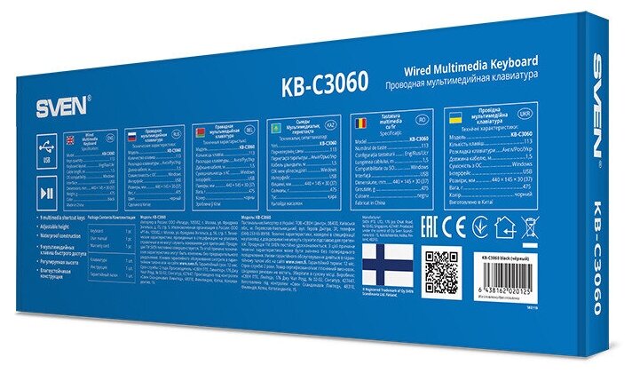 Клавиатура Sven KB-C3060, мембранная, проводная, USB, черный (SV-020125) информация: