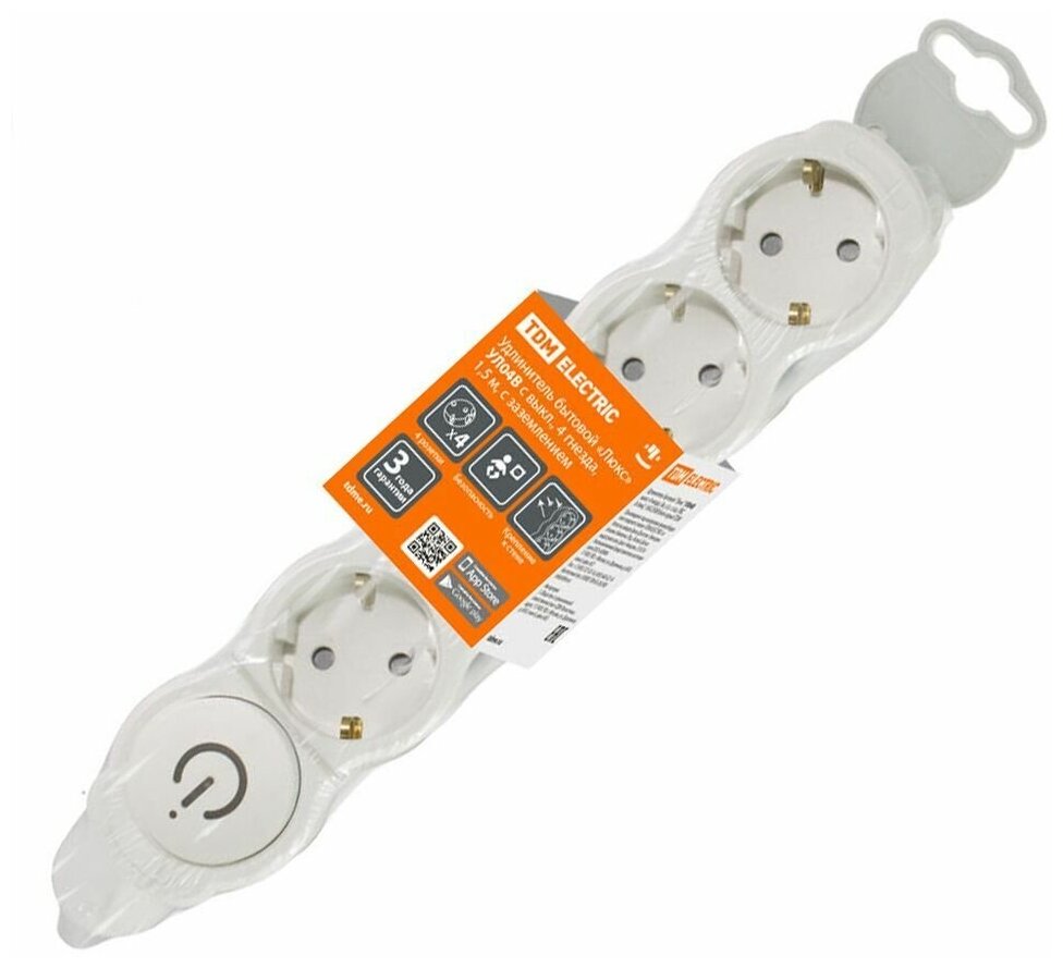 Отзывы на TDM Удлинители бытовые и сетевые фильтры SQ1303-0133 Удлинитель бытовой "Люкс" УЛ04В выкл, 4 гнезда, 1,5м, с з, с з ш, ПВС 3х1мм2 16А 250В бело-серый