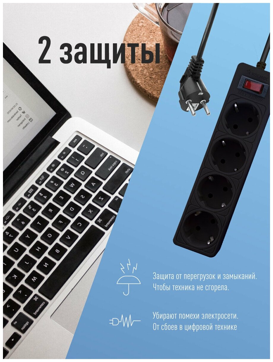 Сетевой фильтр Космос 1,5м 4 гнезда, пвс 3х0,75мм2, 10А/2,2кВт черный 385 ₽