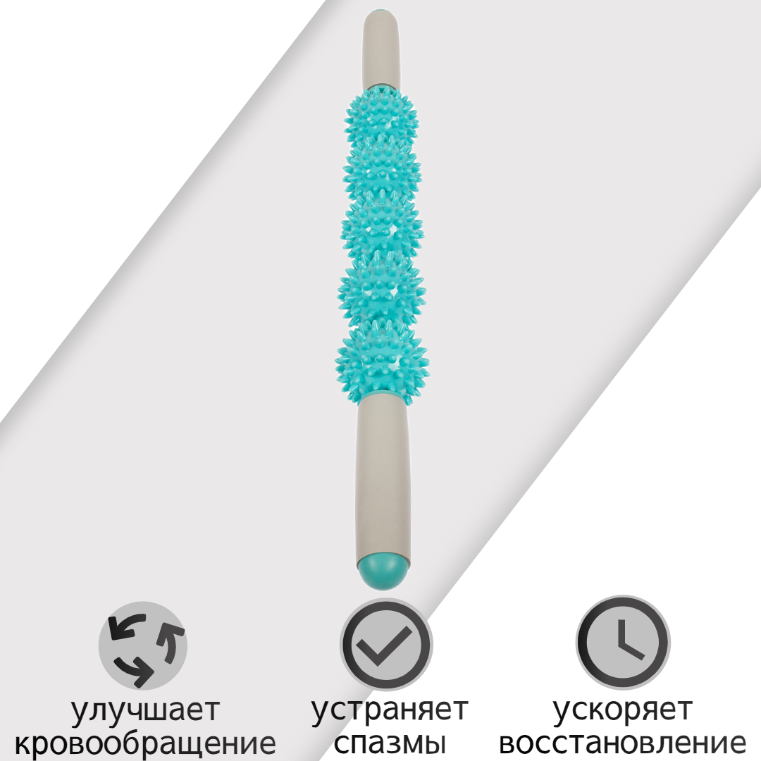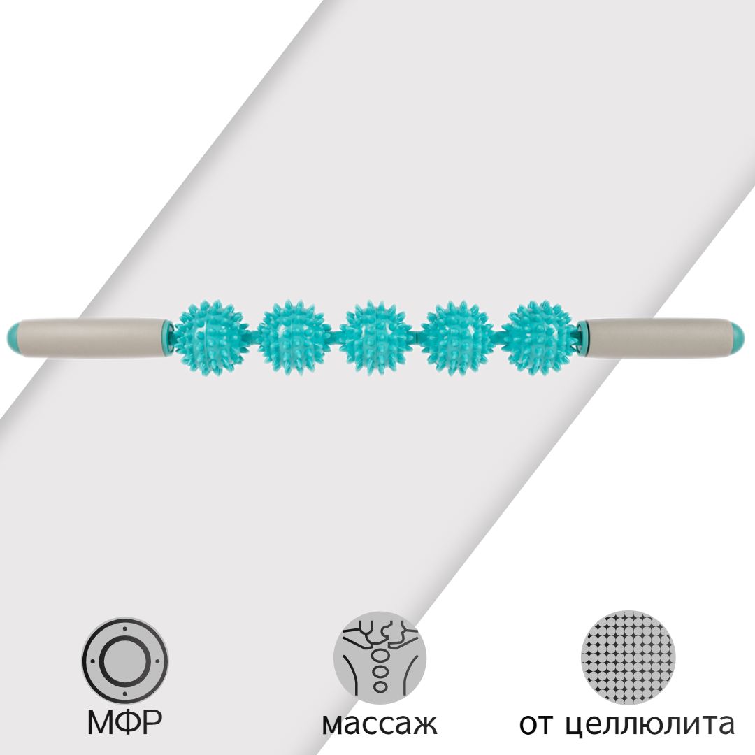 10 цен на Ручной МФР массажер механический М3, 5 массажных мячей на палке, зеленый (ролик для тела, для спины и шеи, ног, антицеллюлитный) STRONG BODY