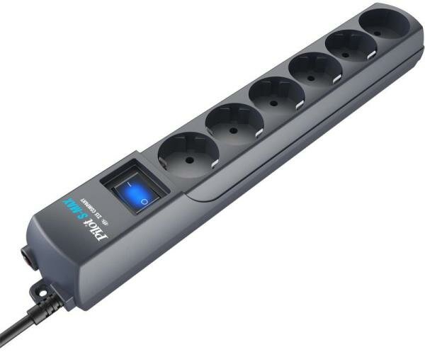 ZIS Pilot S-Max (7 м, 6 розеток) Сетевой фильтр Pilot S Max (5 евро + 1GP), 15А/3.5кВа, автомат, 7 м, графит