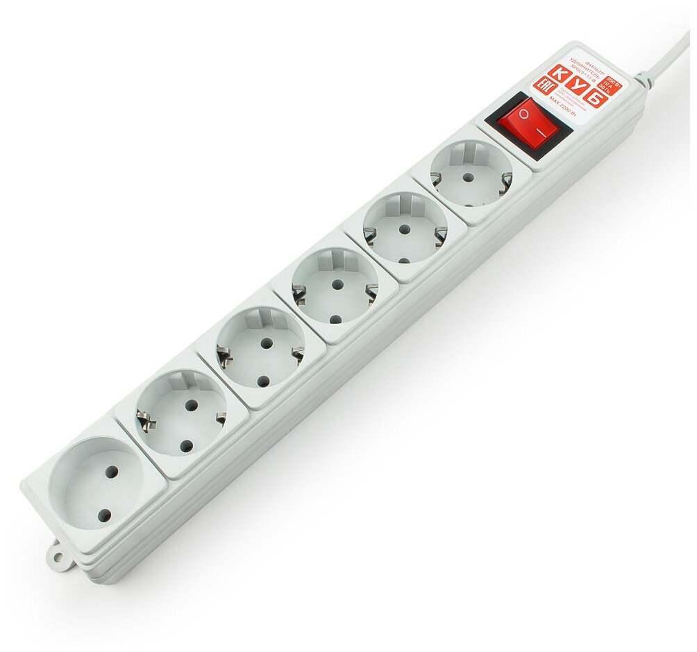 Power Cube (КУБ) Классик сет. удл.-фильтр ПВС 3х0.75 6 роз. 5 м 10А серый (РФ) SPG(5+1)-B-15