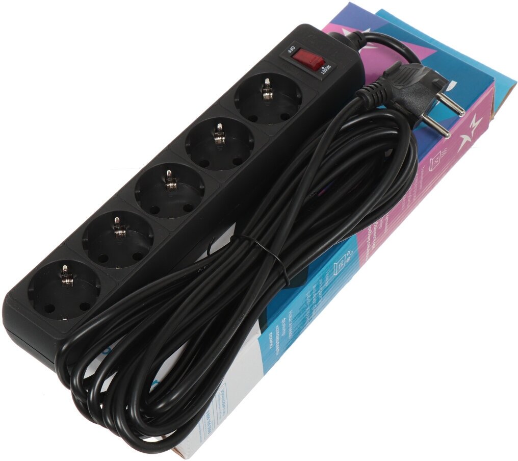 Сетевой фильтр космос 5 м, 5 розеток, пвс 3х0,75мм2, черный