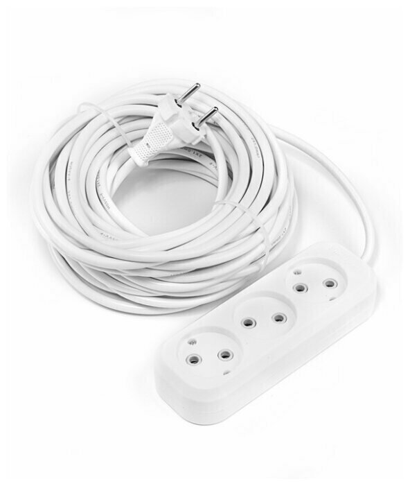 Удлинитель SMARTBUY SBE-10-3-15-N 10А/2.2кВт, ПВС 2х1.0, 3 розетки, 15м, белый