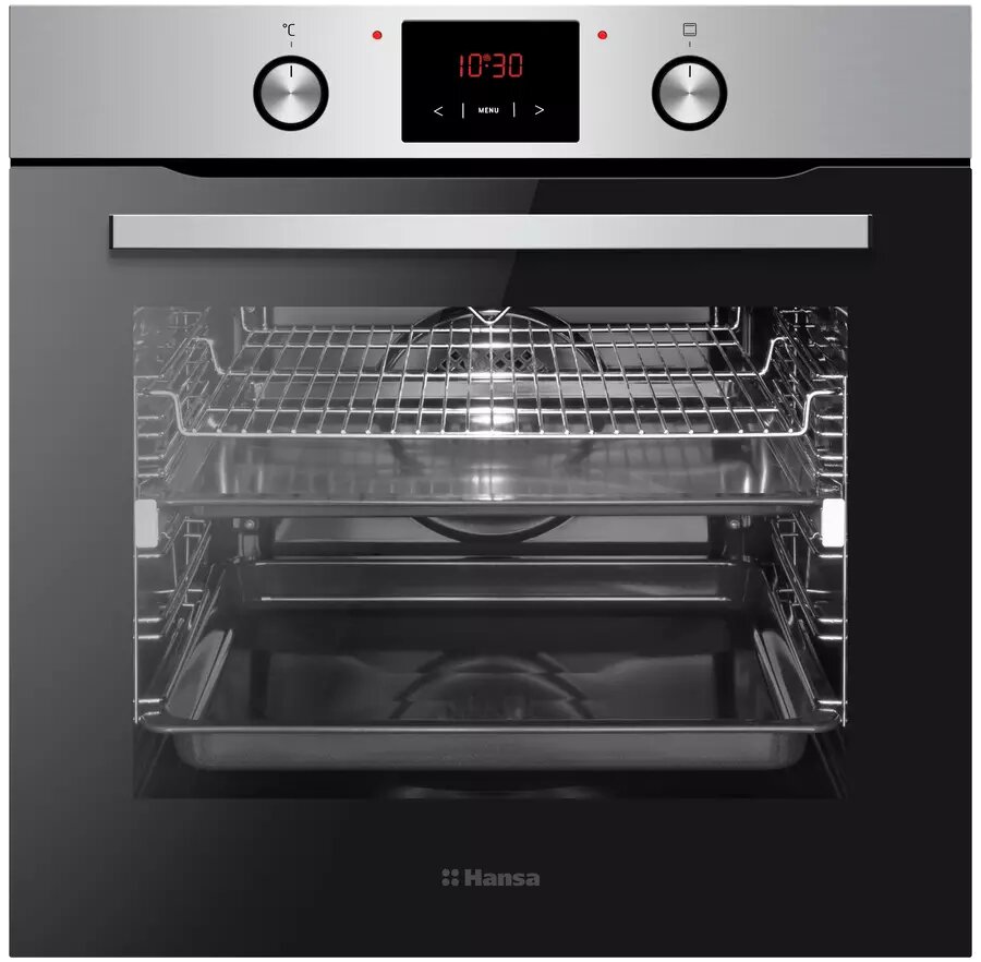 Электрический духовой шкаф Hansa BakingPro встраиваемый BOEI694501, 60см, объем камеры XXL, с грилем и улучшенной конвекцией, с быстрым нагревом, с таймером, толстое жаропрочное стекло