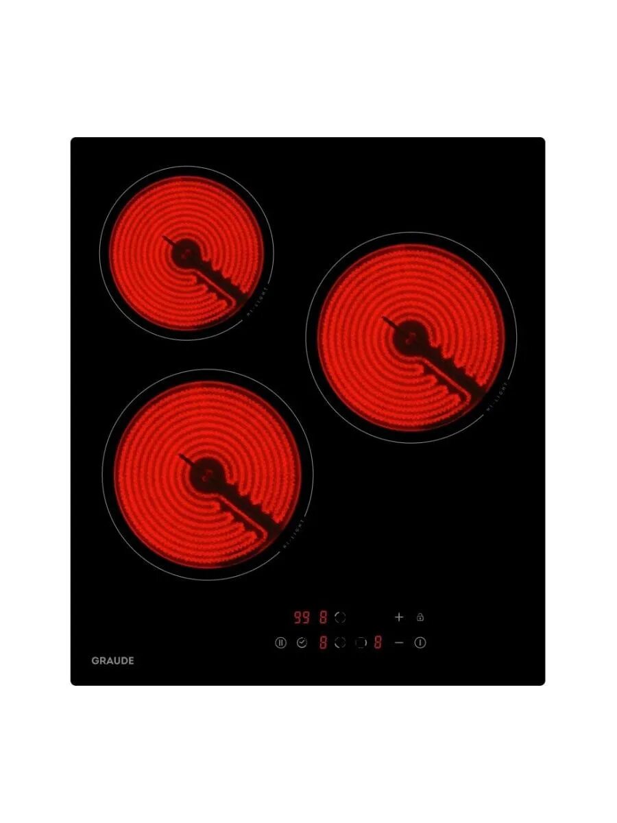 Встраиваемые электрические панели Graude/ 45 см, Электрическая, стеклокерамика, 5.1 х 45 х 52 см, 9 ступеней нагрева, Функция таймера, Индикация нагрева, Индикация красного цвета, Автоматическое отключение, защита от детей, сенсороное управление, черная