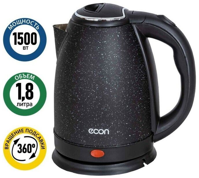Чайник электрический Econ Eco-1891ke, 1500 Вт, нержавеющая сталь, 1.8 л, чёрный Econ 9161993