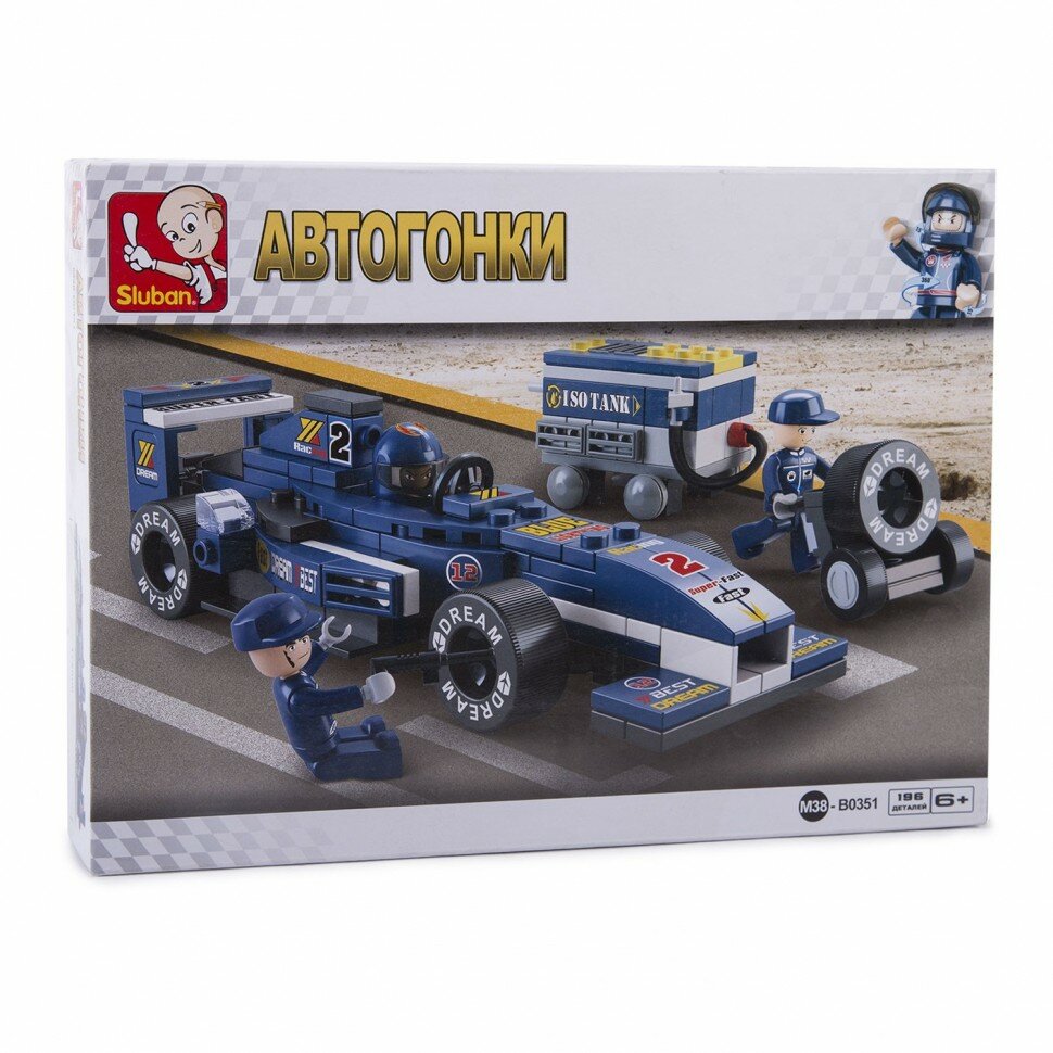Конструктор Sluban Автогонки Гоночная машина на питстопе, инерционная, 196 деталей M38-B0351