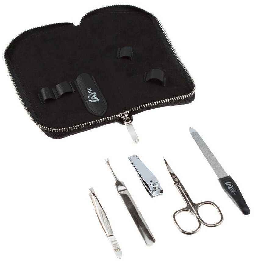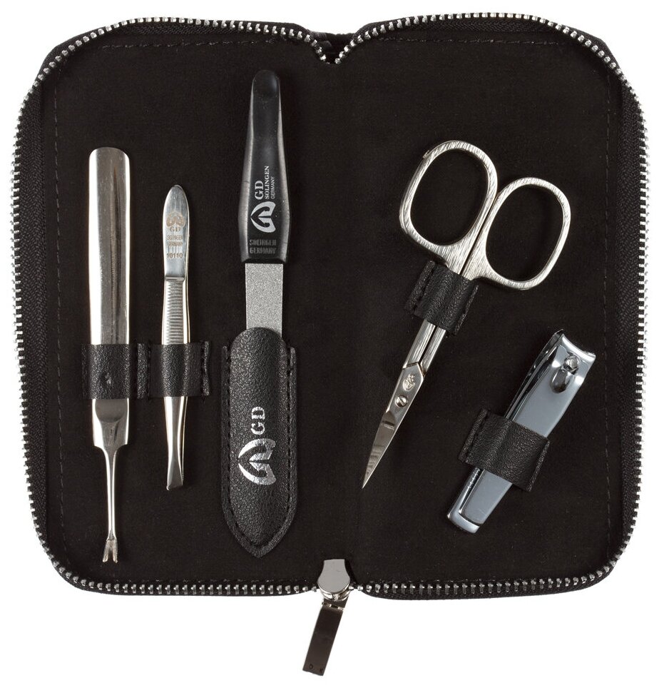Маникюрный набор GD, 5 предметов, футляр: искусственная кожа, фактура - гладкая, цвет черный (2151BLSM)