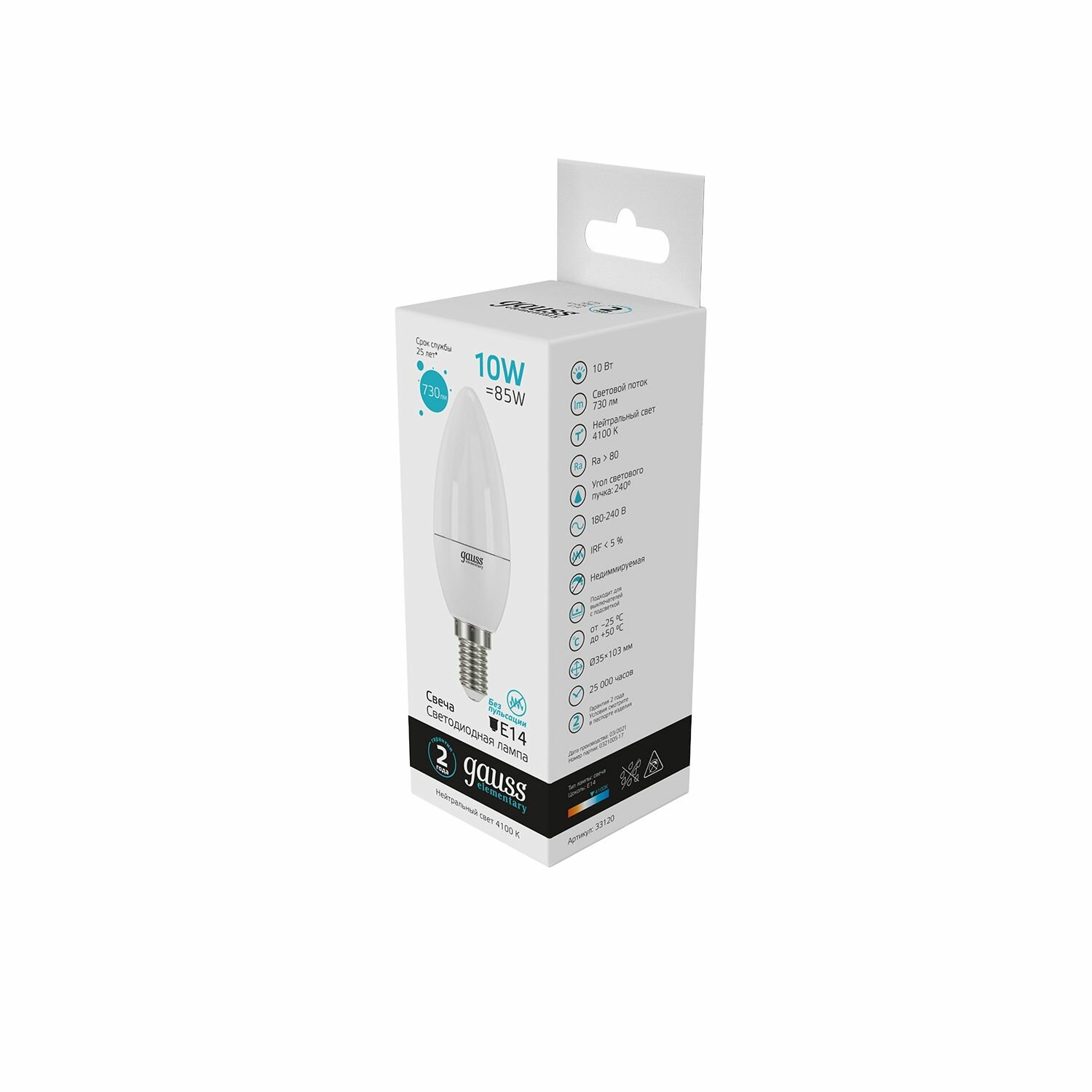 Лампа Gauss Elementary Свеча 10W 730lm 4100K Е14 LED информация: