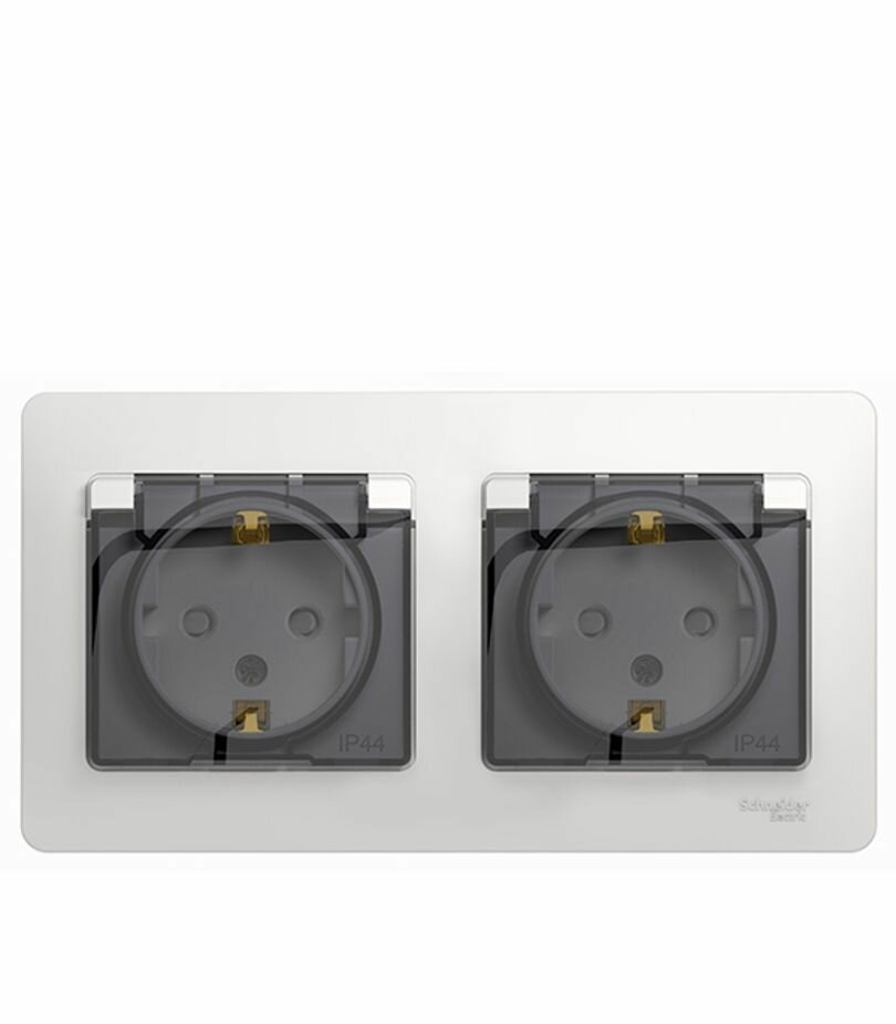 GLOSSA Розетка двойная с заземлением, со шторками, в сборе, IP44, белый | код GSL000147 | Schneider Electric ( 1шт. ) 1 173 ₽