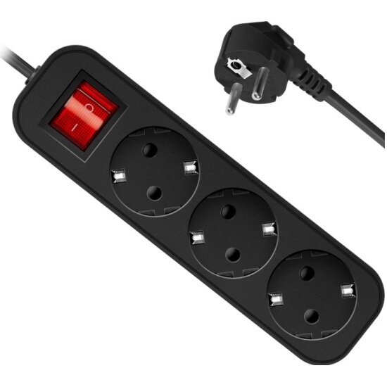 Удлинитель с выключателем Defender S, 5.0 м, 3 розетки, черный