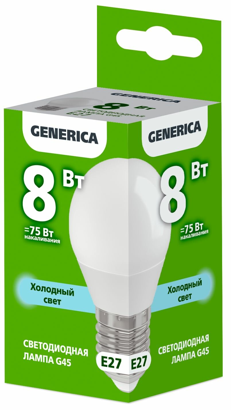 Лампа светодиодная G45 8Вт шар 6500К E27 230В GENERICA LL-G45-08-230-65-E27-G информация: