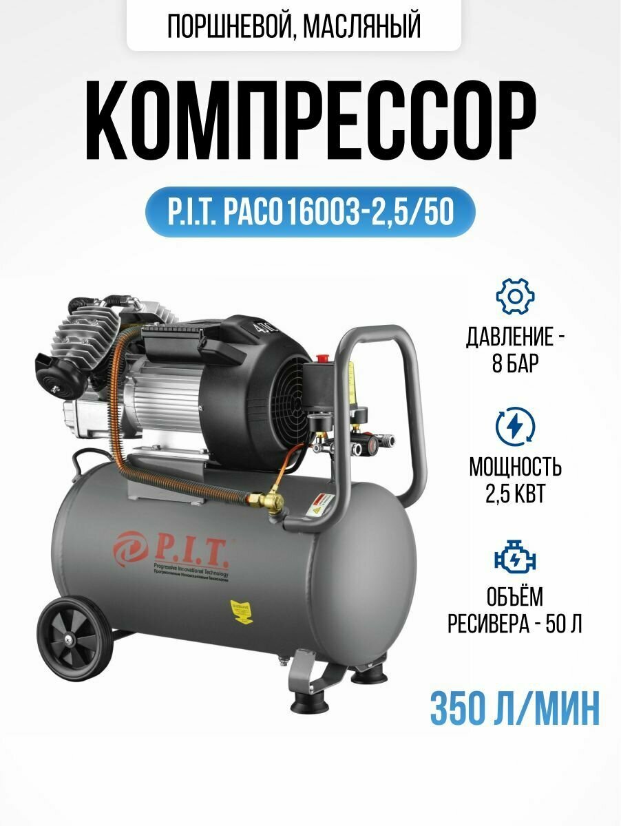 Компрессор масляный P.I.T. PAC 016003-2,5/50, 50 л, 2.5 кВт
