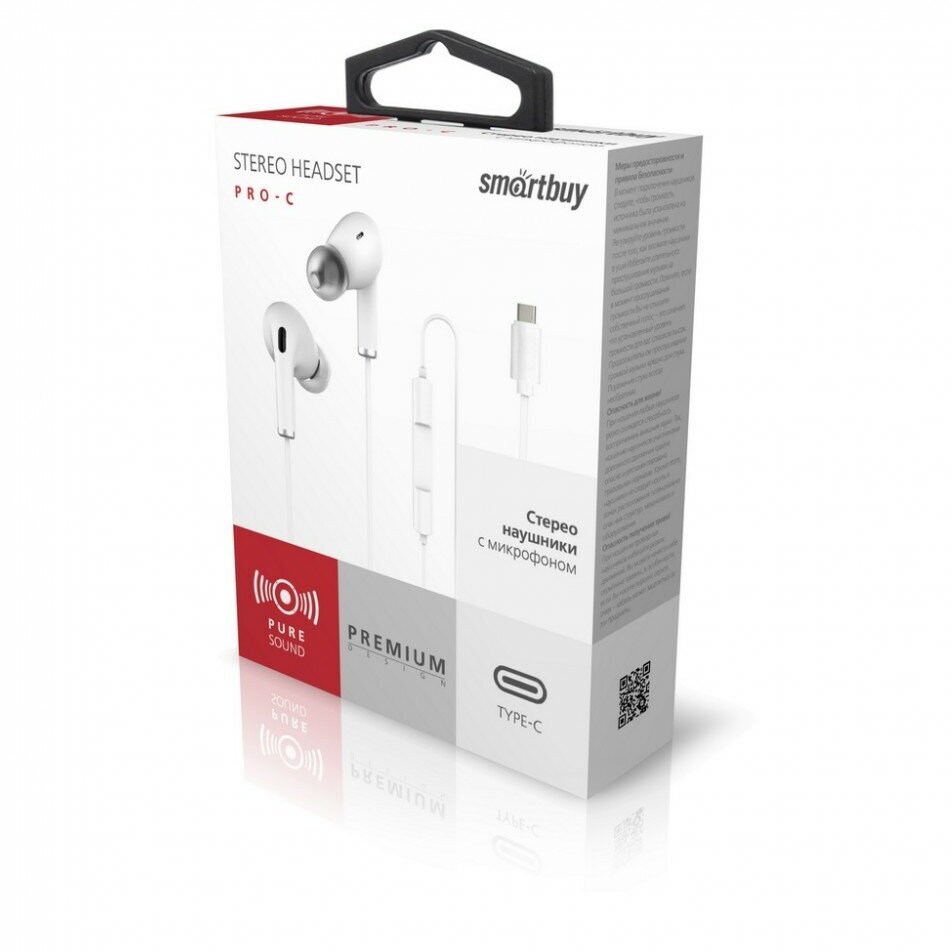 Гарнитура вкладыши SmartBuy PRO, белая 3.5мм, 1,2м (SBH-399) - 1 шт.