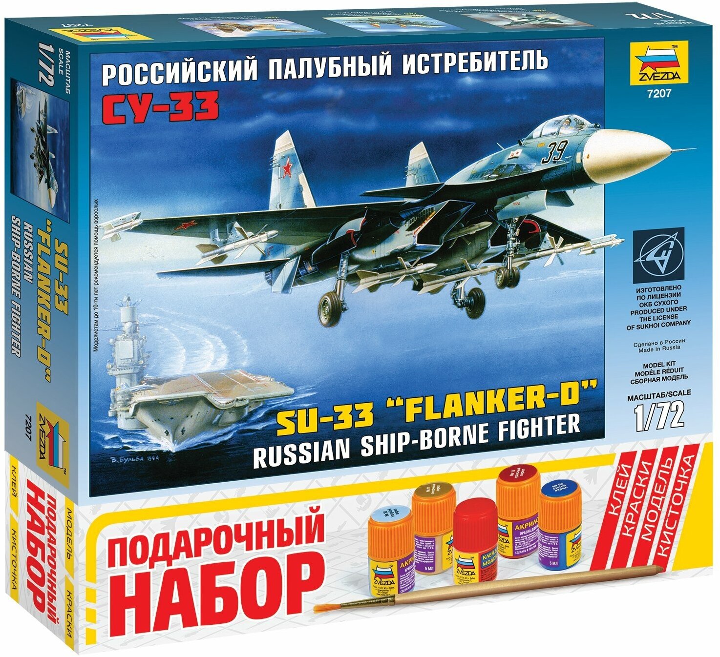 Сборная модель ZVEZDA Российский палубный истребитель Су-33, подарочный набор, 1/72, ZV-7297П