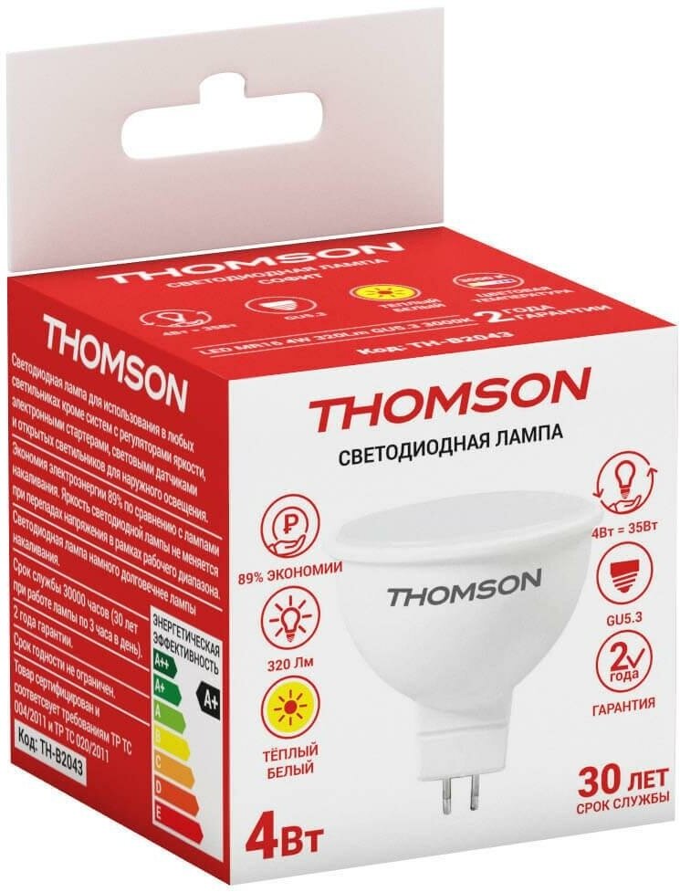 Светодиодная лампа Thomson 4 Вт GU5,3 теплый свет информация: