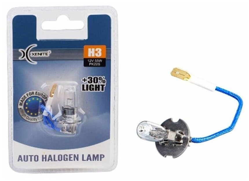 Лампа Галогеновая Головного Света H3 Pk22s 3200K Яркость +30% 12V 55W Блистер 1 Шт 1007088 Xenite арт. 1007088