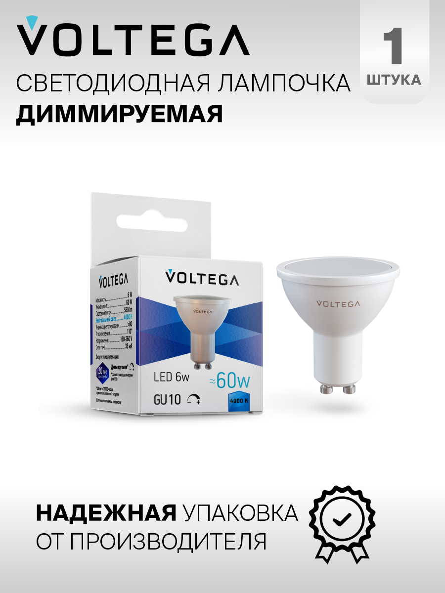 Лампочка светодиодная диммируемая Voltega Simple 8458 GU10 6Вт 4000К