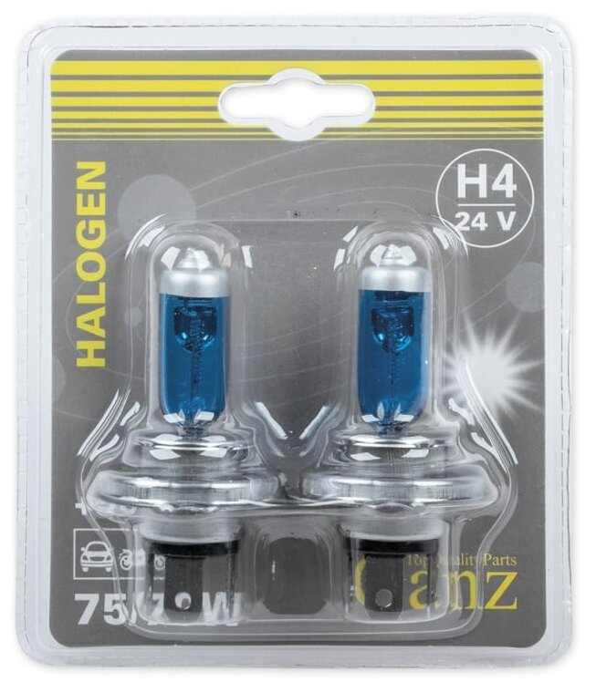 Лампа 24V H4 75 70W +50% P43t 5000K GANZ 2 шт. блистер GIP06055 GANZ GIP06055 1шт