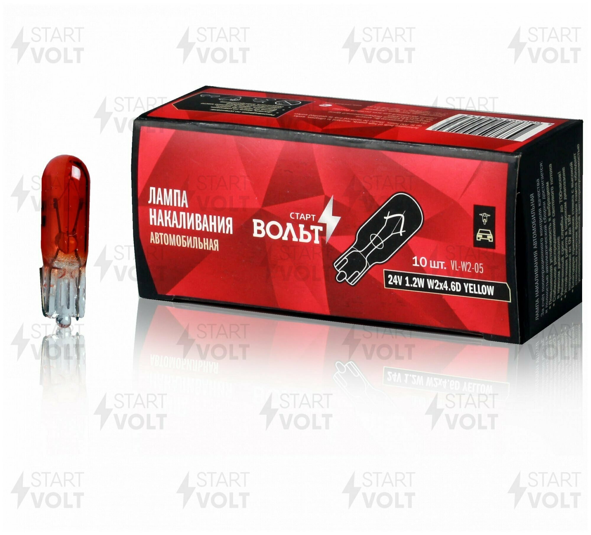 Лампа 24V W1.2W W2X4.6D желтая () бесцокольная, VLW205 (упаковка 10 шт.), STARTVOLT VL-W2-05