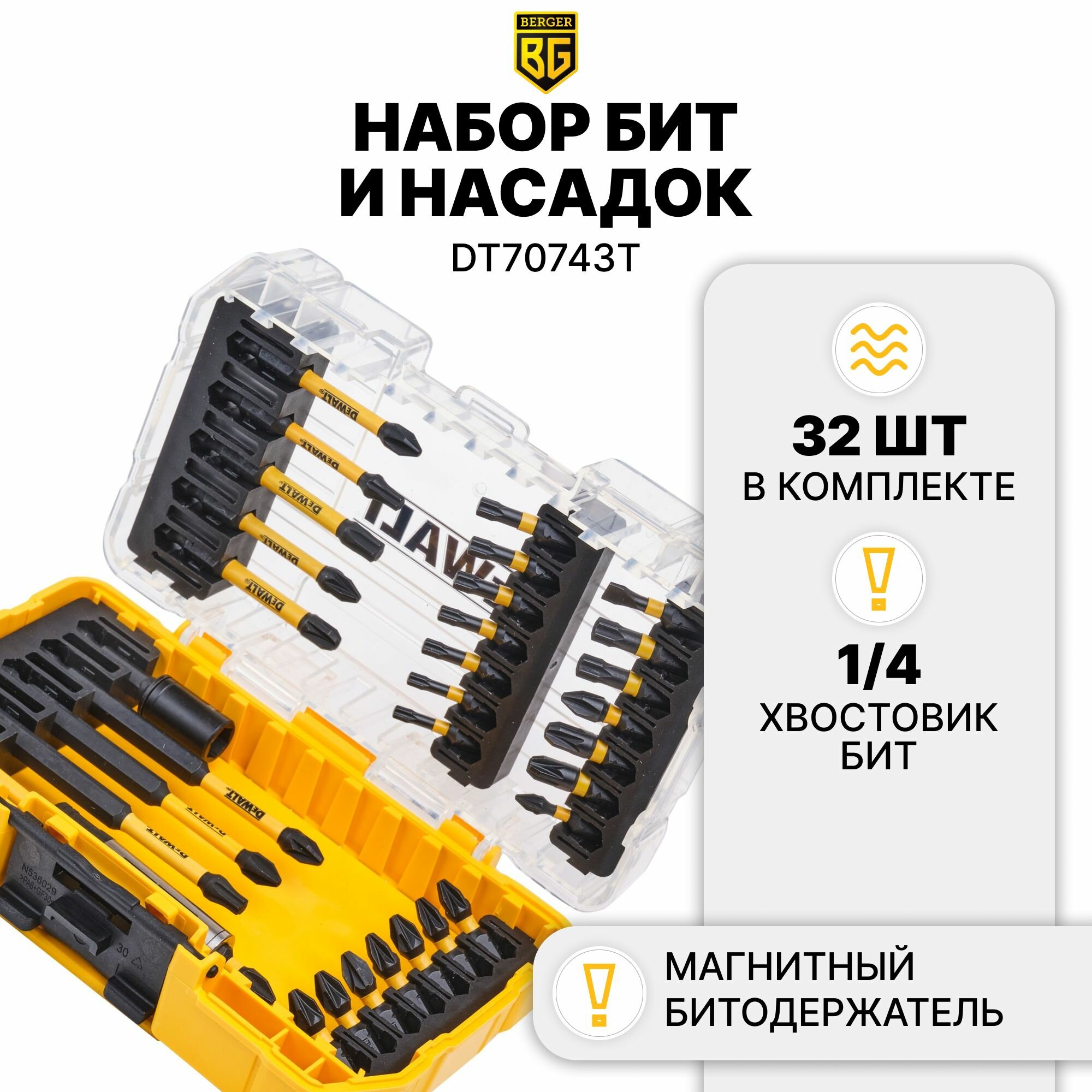 Мы выбрали 10 лучших цен на Набор бит и насадок в кейсе DEWALT DT70743T, FLEXTORQ 32 предмета. Перед тем как купить Набор бит и насадок в кейсе DEWALT DT70743T, FLEXTORQ 32 предмета посмотрите найденные предложения из Яндекс Маркета и других сайтов на основе XML фидов.