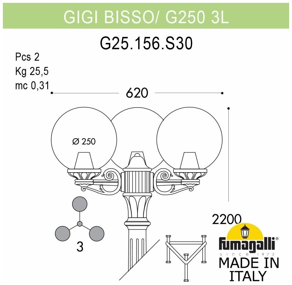 Садово-парковый фонарь Fumagalli Gigi Bisso/G250 3L G25.156.S30.WYE27, Белый и Матовый информация: