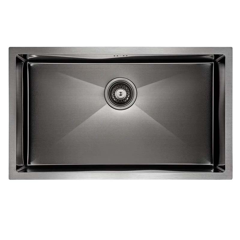 Мойка для кухни из нержавеющей стали Paulmark VALDE, 740х440 мм, PVD покрытие, шумопоглащающее покрытие Stille, врезная / вровень со столешницей, цвет вороненая сталь, PM217444-GM