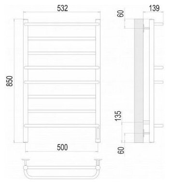 Полотенцесушитель электрический Terminus КС Аврора П8 500х800 черный, 4670078527493