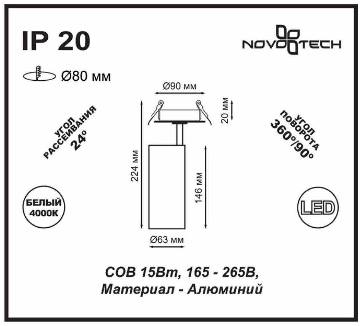 Встраиваемый светильник Novotech Spot Selene 357548 информация:
